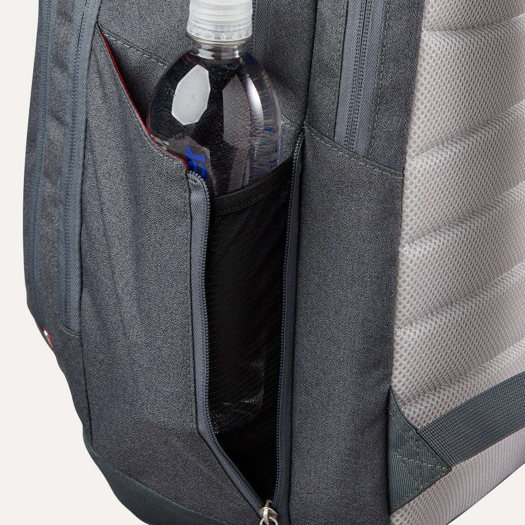 A dedicated racquet compartment with locking zippers holds up to two frames, while the main compartment adds a padded laptop sleeve, ventilated pocket for shoes or dirty gear and multiple accessory pockets so everything has its place from parking lot to baseline.