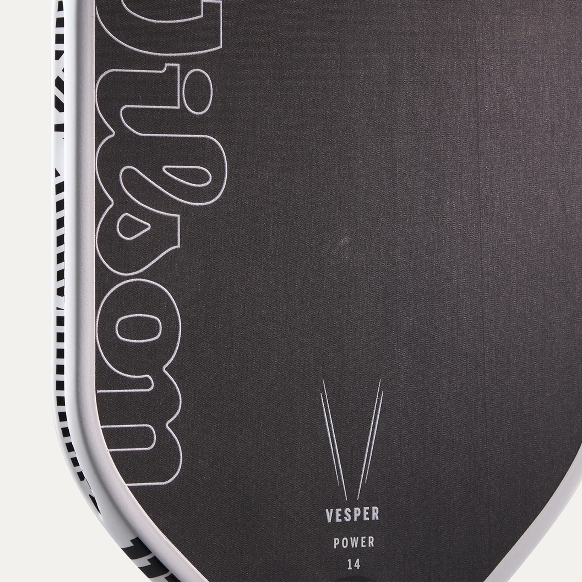 The Wilson Vesper Power 14 Pickleball Paddle is an elongated power frame for aggressive players who want extra pace on drives, serves and put aways without giving up spin or precision.